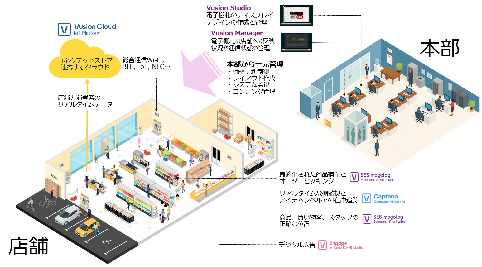 POS、電子棚札、AIカメラ、デジタルサイネージ、そして分析ダッシュボード。
